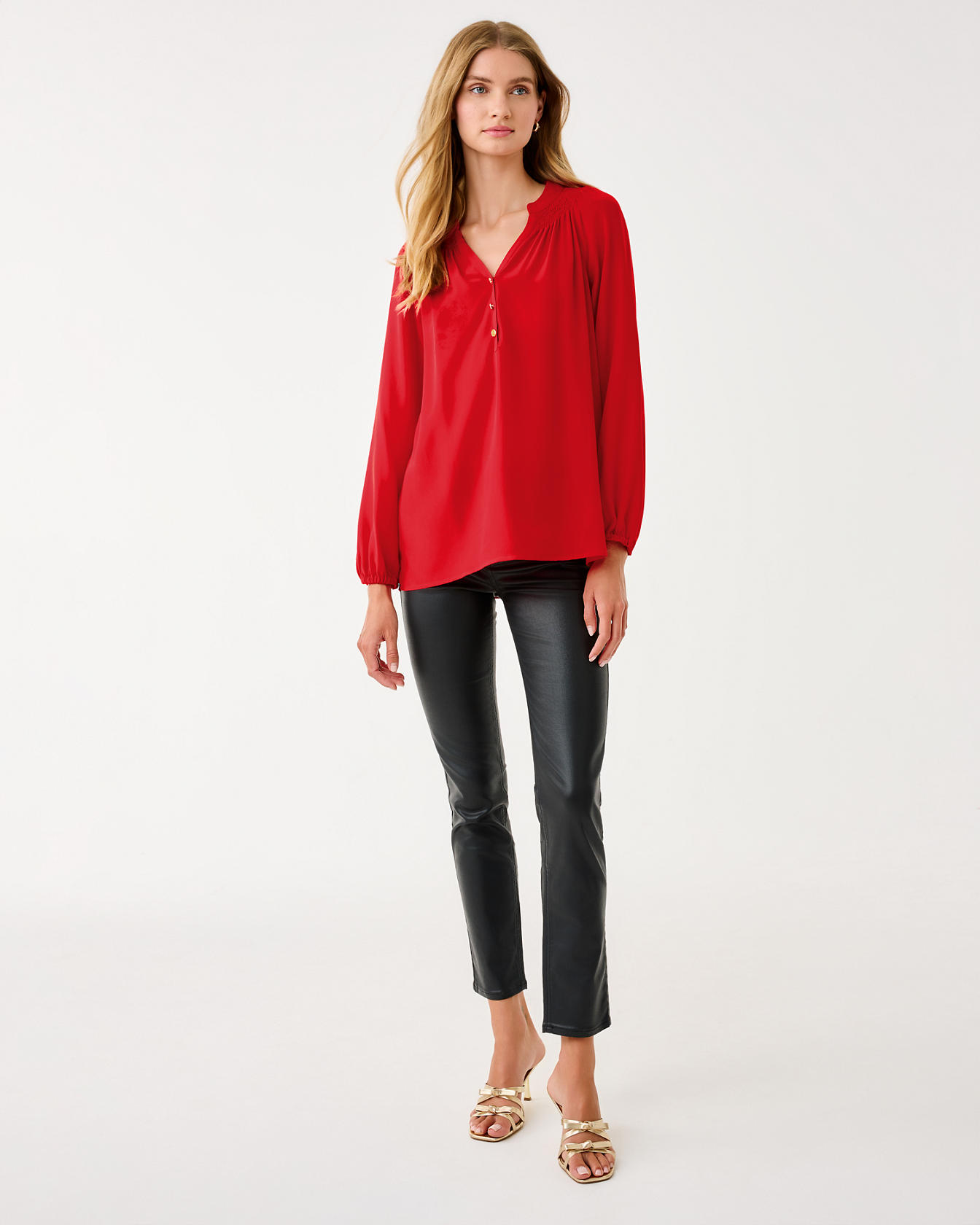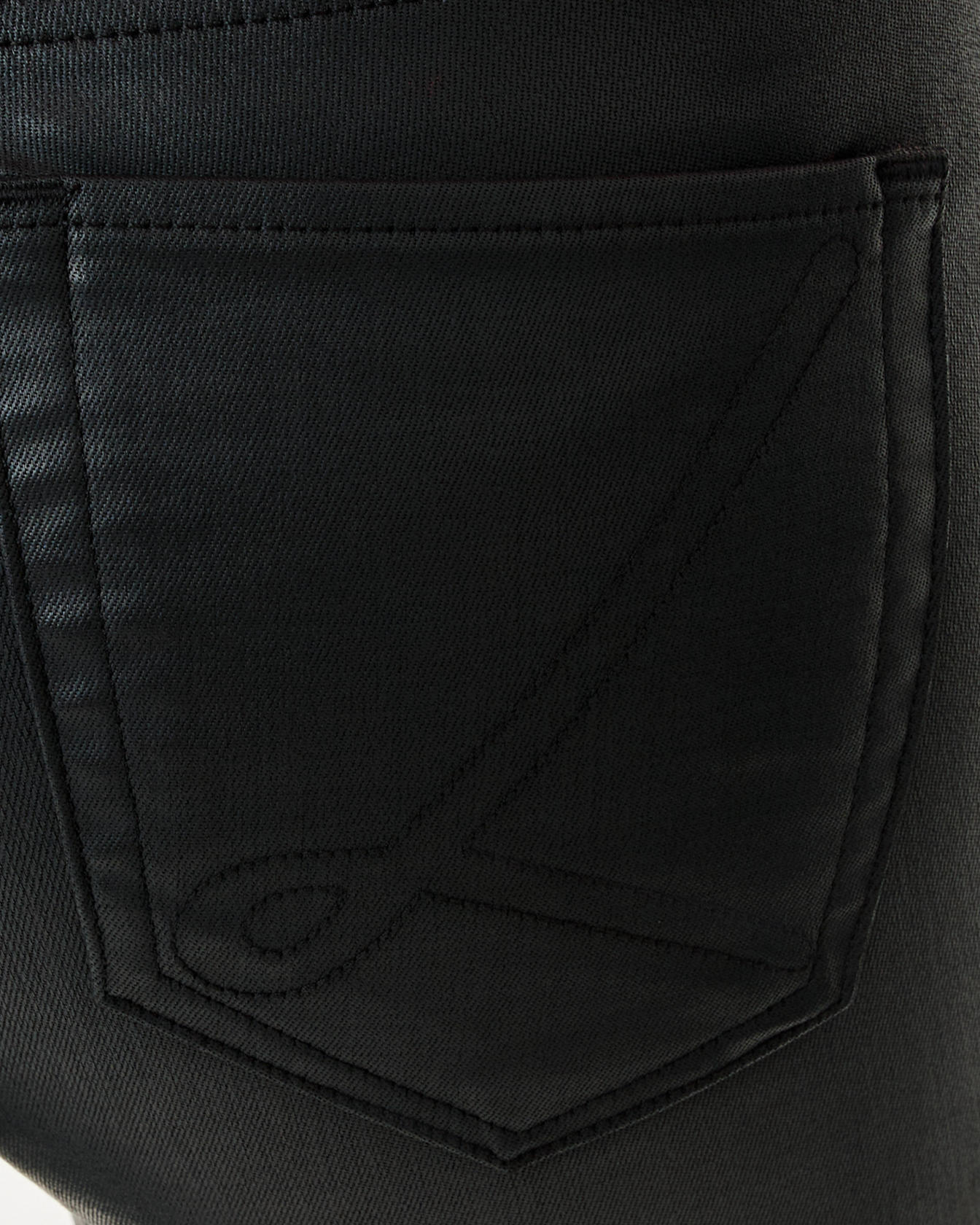 • Black Coated Stretch Denim (59% Rayon, 39% Polyester, 2% Spandex).
