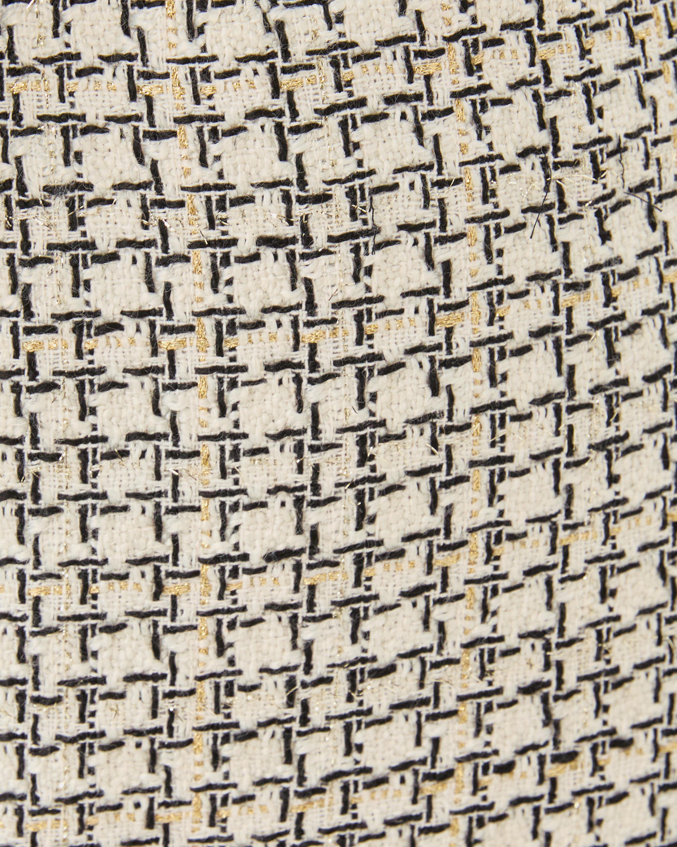 - Lurex Houndstooth Boucle (93% Polyester, 4% Cotton, 2% Rayon, 1% Metallic).