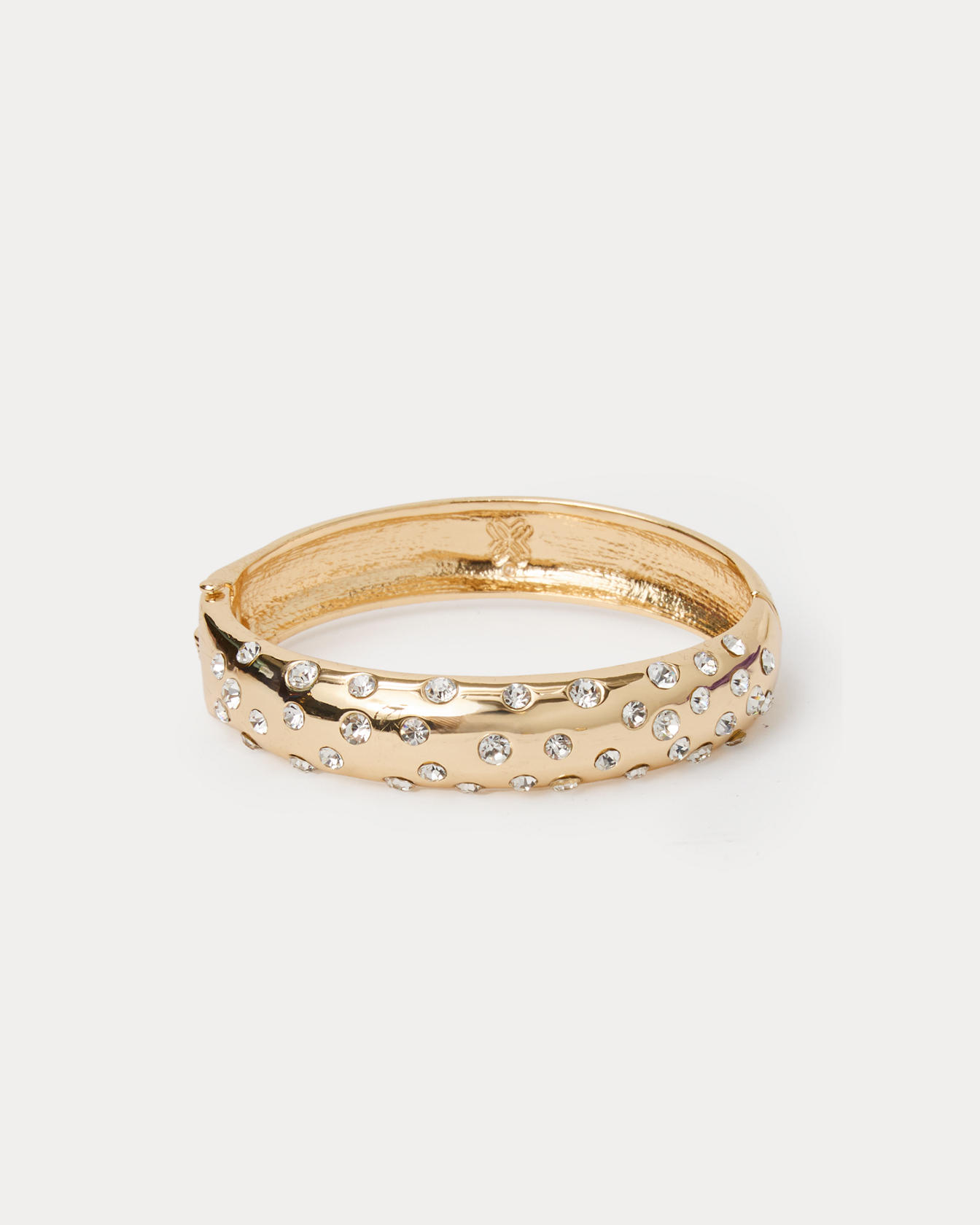 - Gold hinge bangle bracelet with inset rhinestones.
