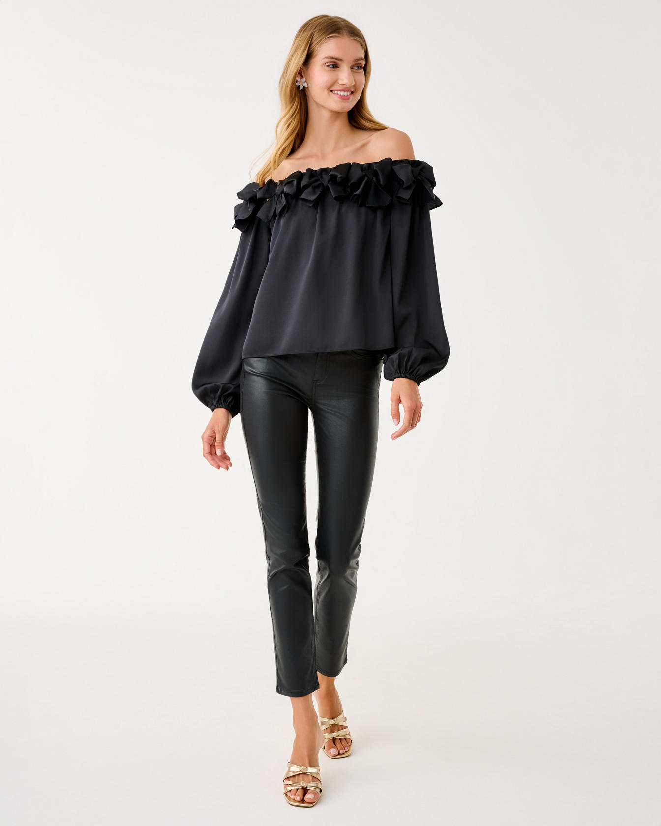 - Relaxed fit, off-the-shoulder top with long sleeves and voluminous bow details.