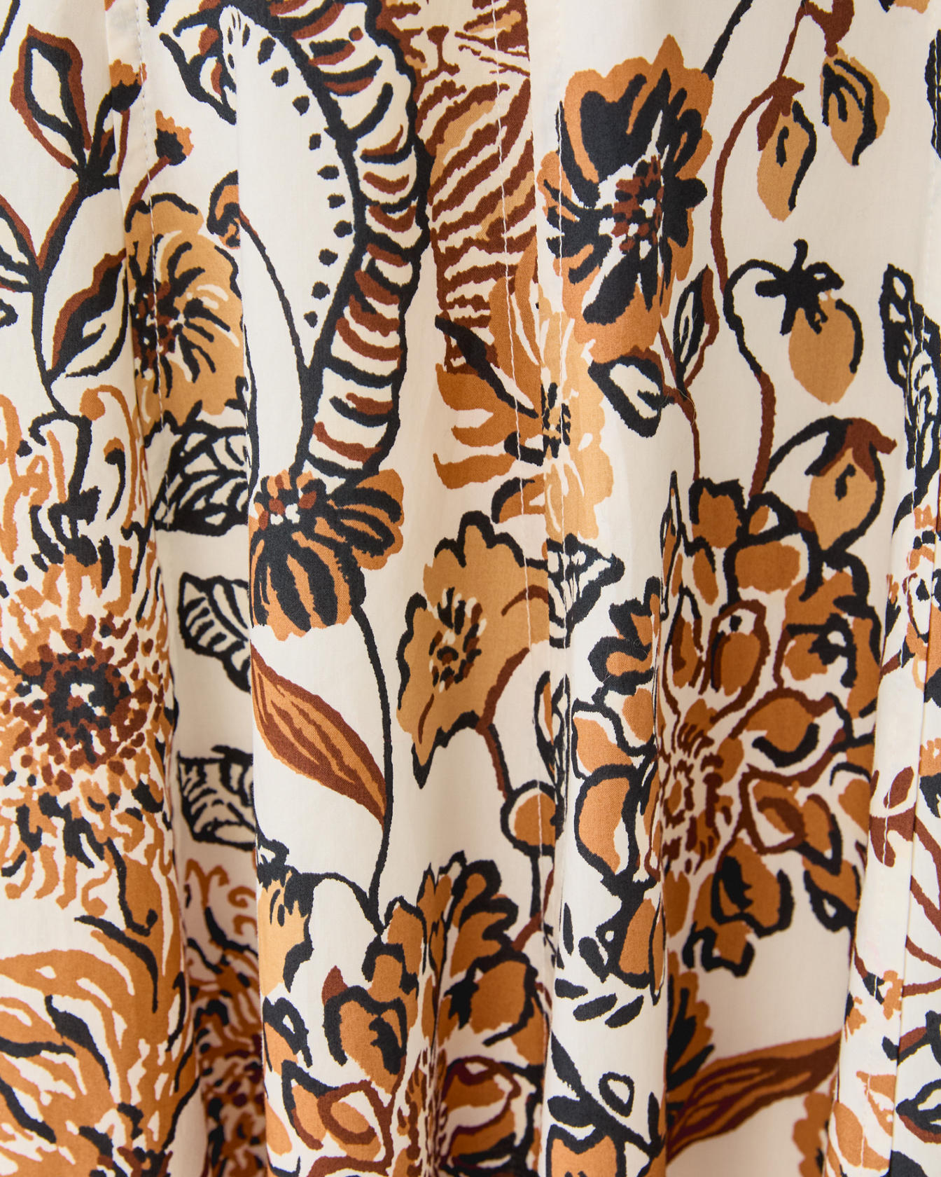 - Fits against body at chest and waist and is full at bottom hem.