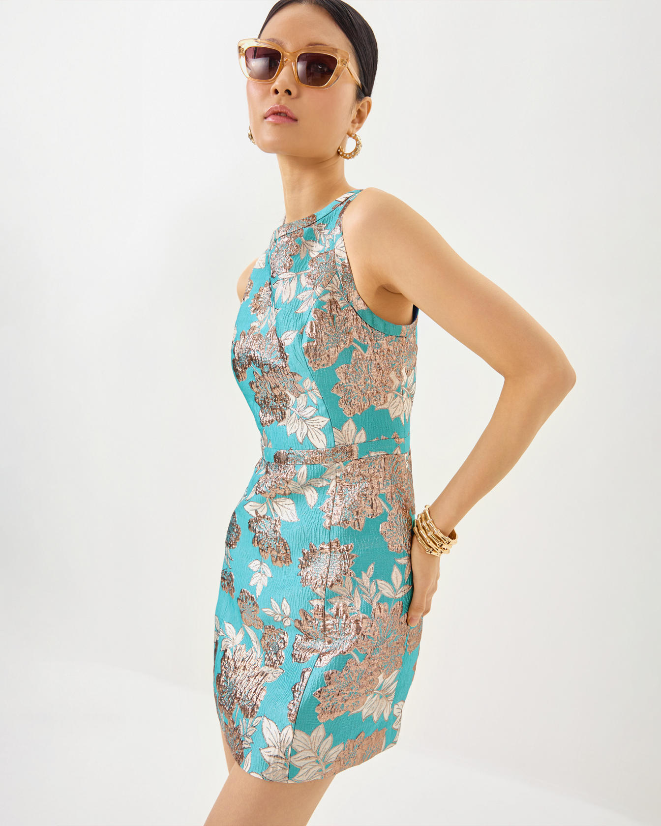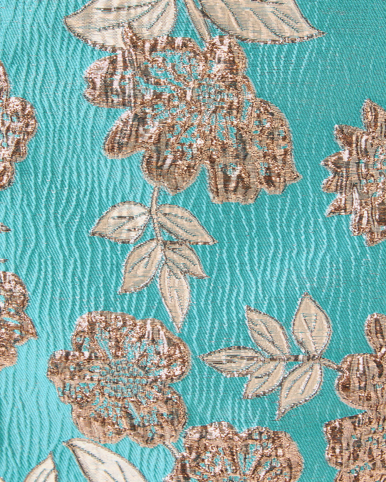 - Floral Fling Metallic Jacquard (58% Polyester, 33% Metallic, 9% Nylon).