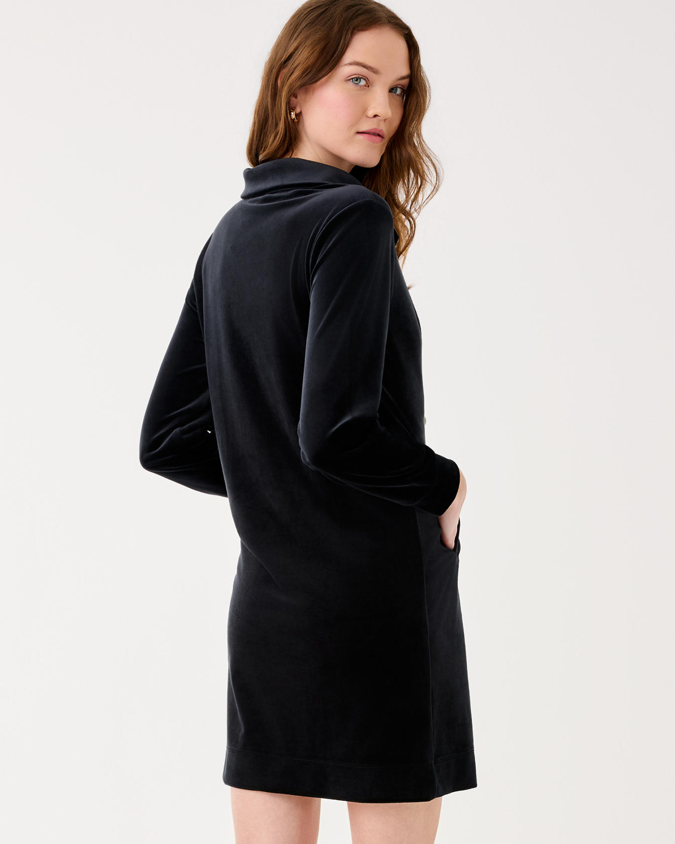 - Easy fit, long sleeve, half-zip pullover dress.