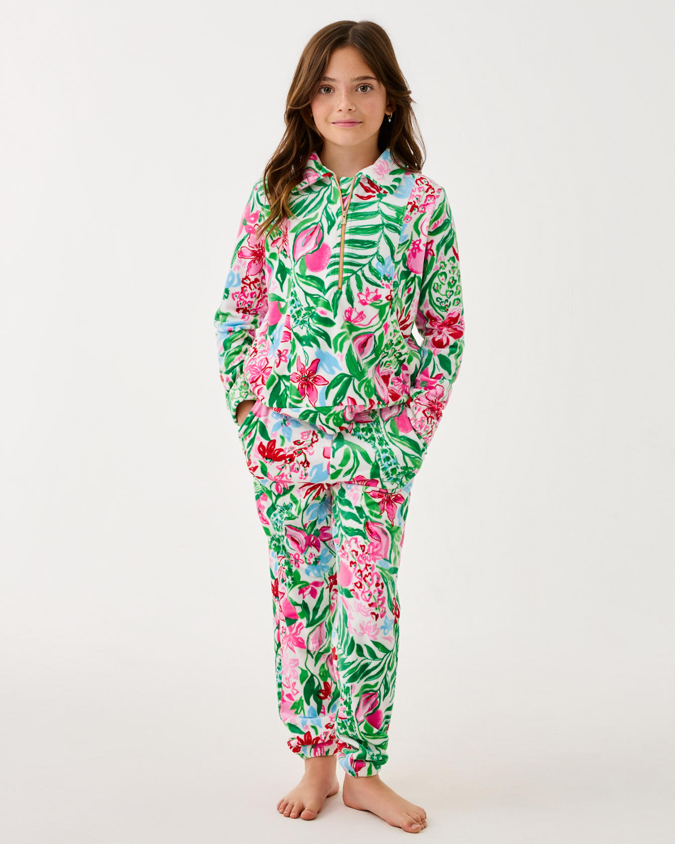 • Easy fit, half-zip popover with long sleeves, cuffs, and a gold logo zipper.