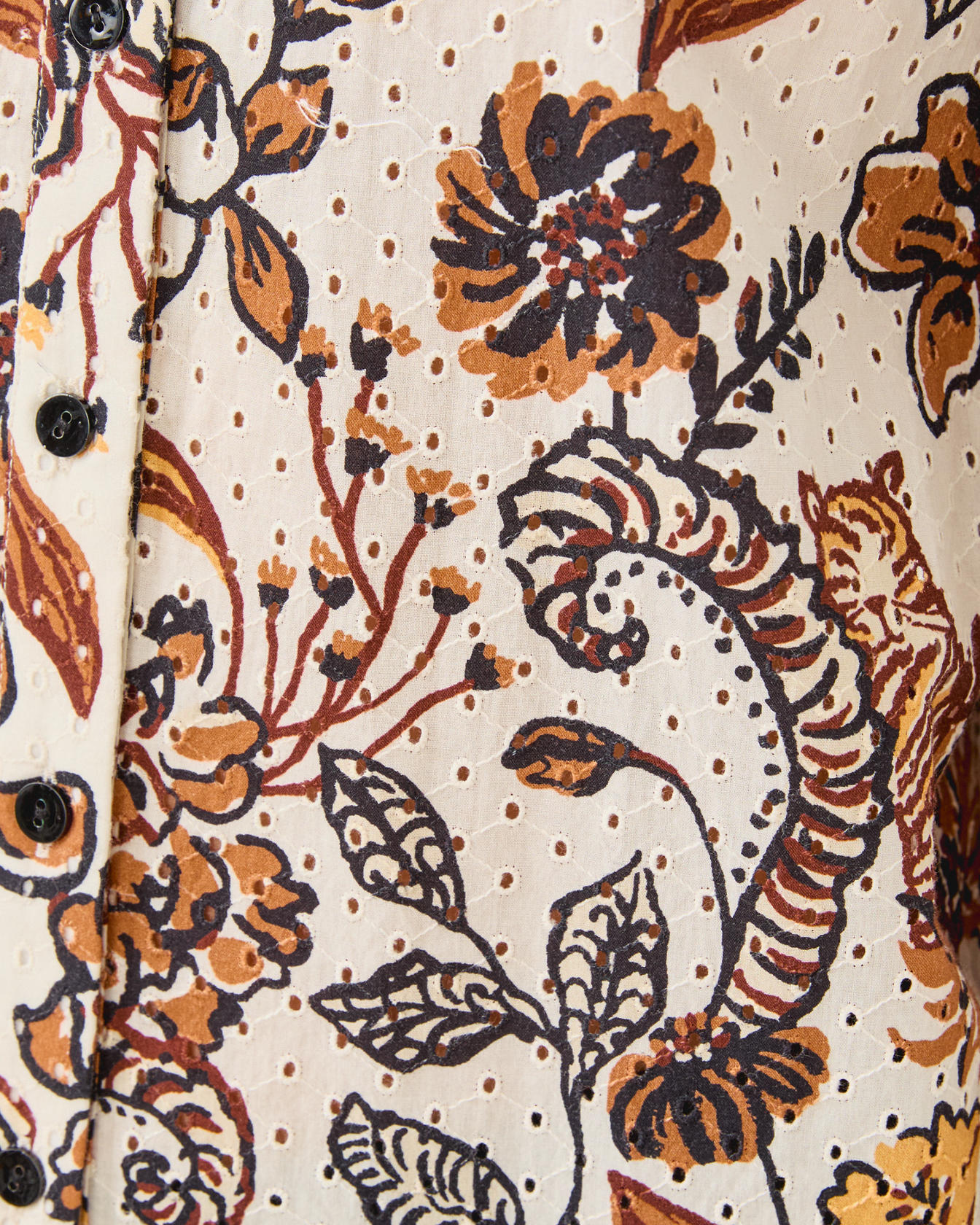 - Easy fit, long sleeve, button front top with a neckband and elastic cuffs.