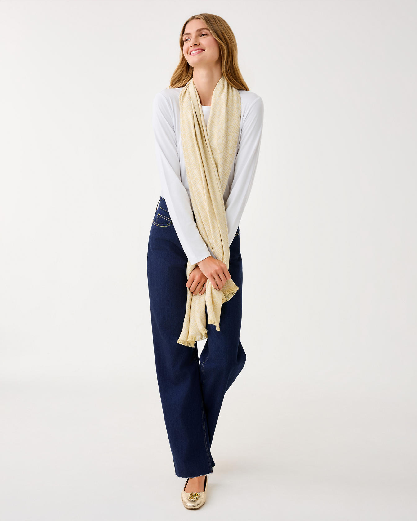 Our metallic Logo Jacquard Wrap is the perfect plus-one for any social occasion.
