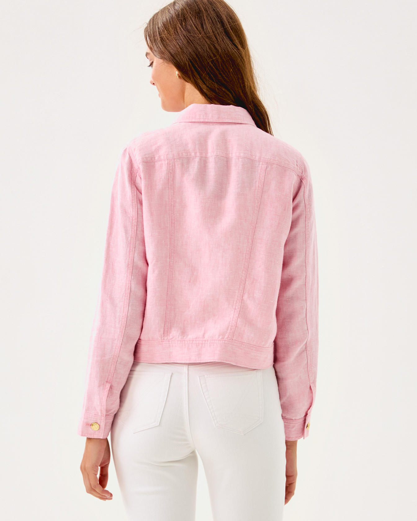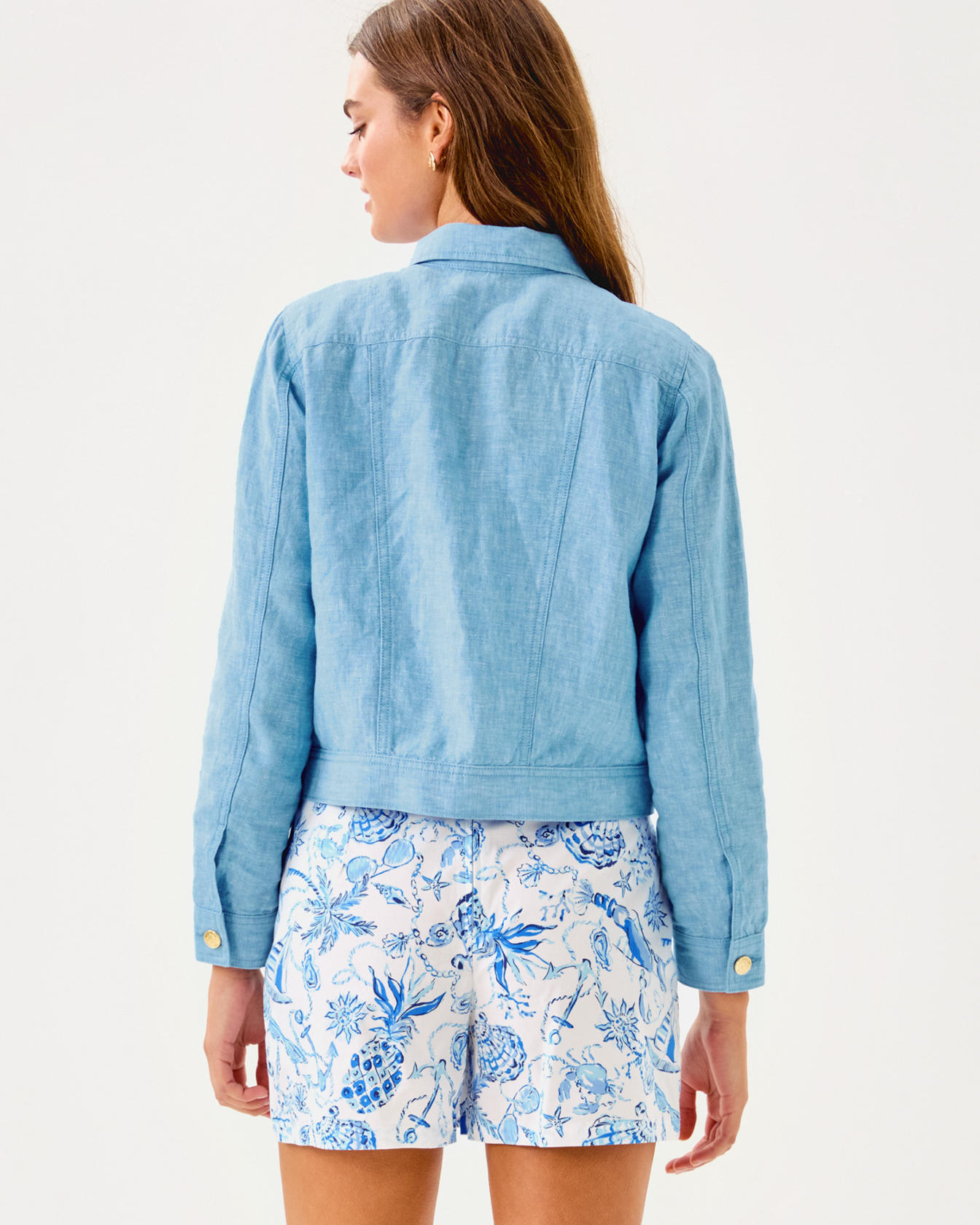 Throw on the Seaspray Linen Jacket over your favorite dress, top, or romper. Stash your essentials in the pockets and wear your favorite gold wedges to match the gold details. This lightweight linen jacket will be your go-to all season long.