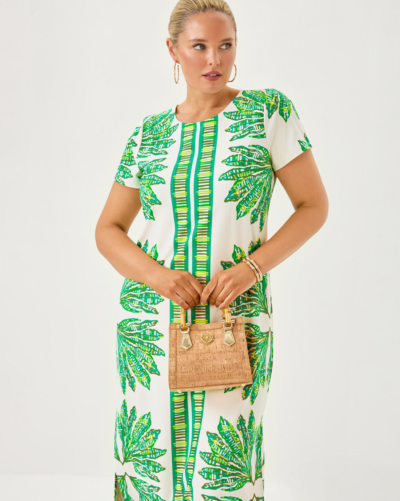 - Straight fit, pullover maxi dress with short sleeves.