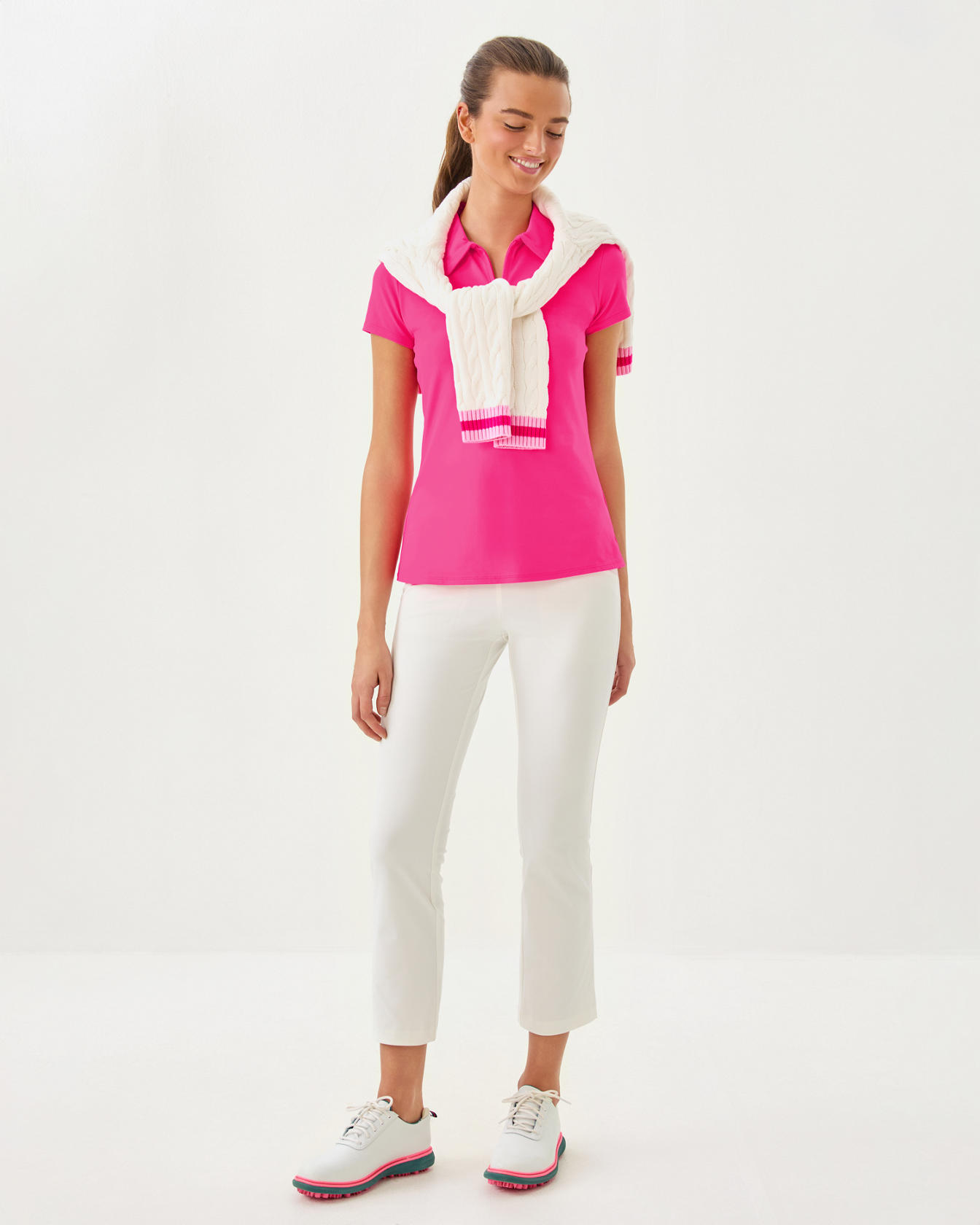 - Fairway Performance Twill® (91% Polyester, 9% Spandex) – This performance twill is designed with moisture wicking and UPF 50+ technology that will keep you dry and protected from the sun.