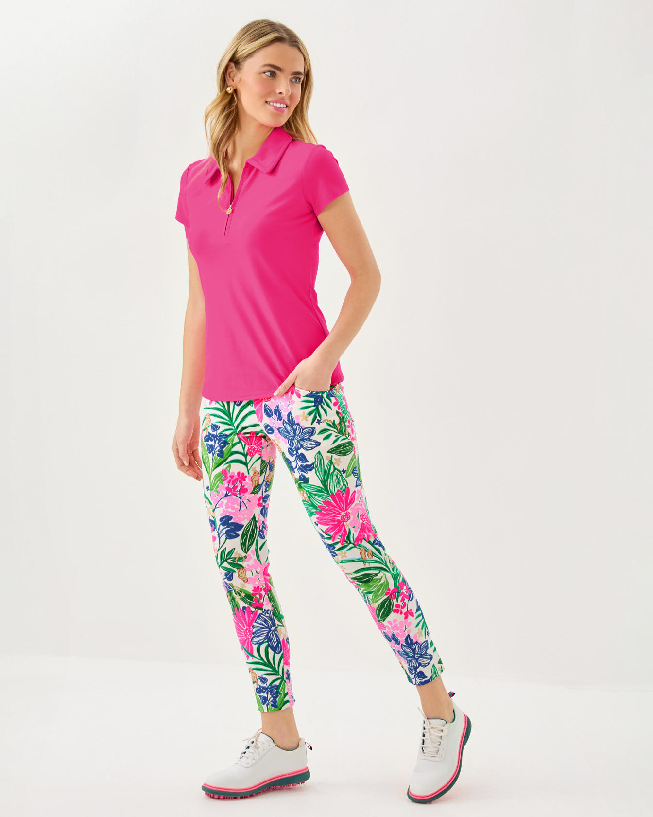 - UPF 50+ Luxletic® collared polo with a zipper detail. Moisture wicking.