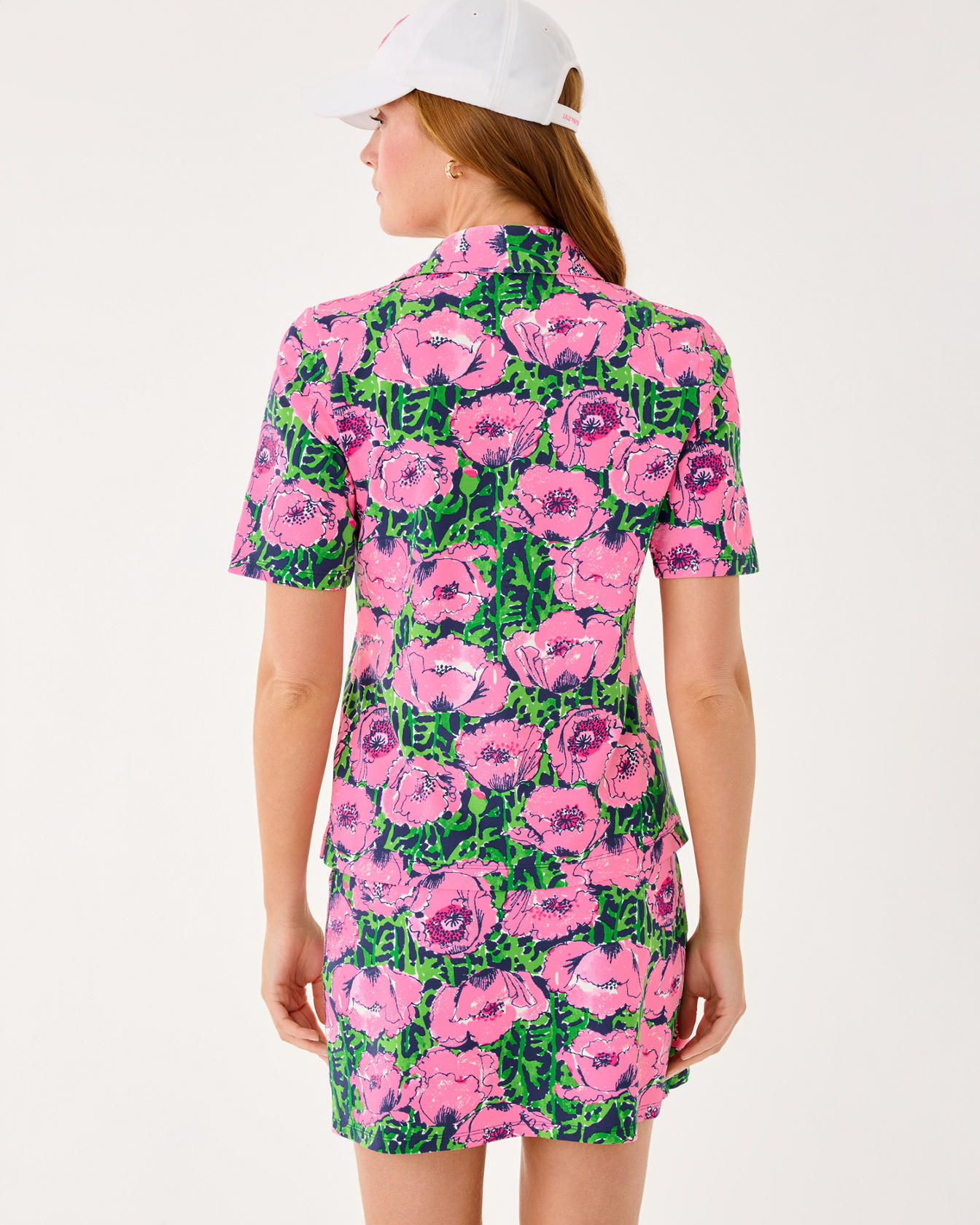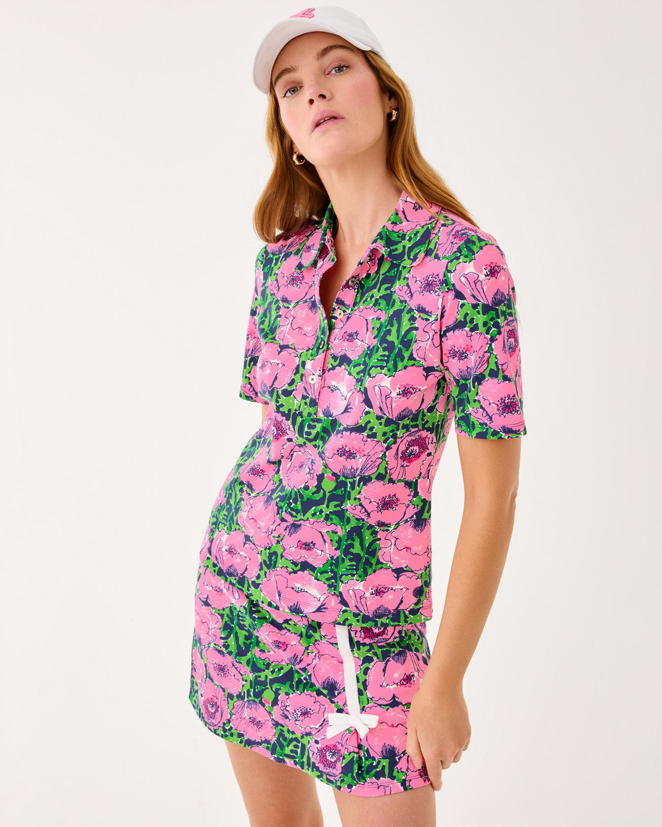 • UPF 50+ Luxletic® polo with gold buttons. Moisture wicking.